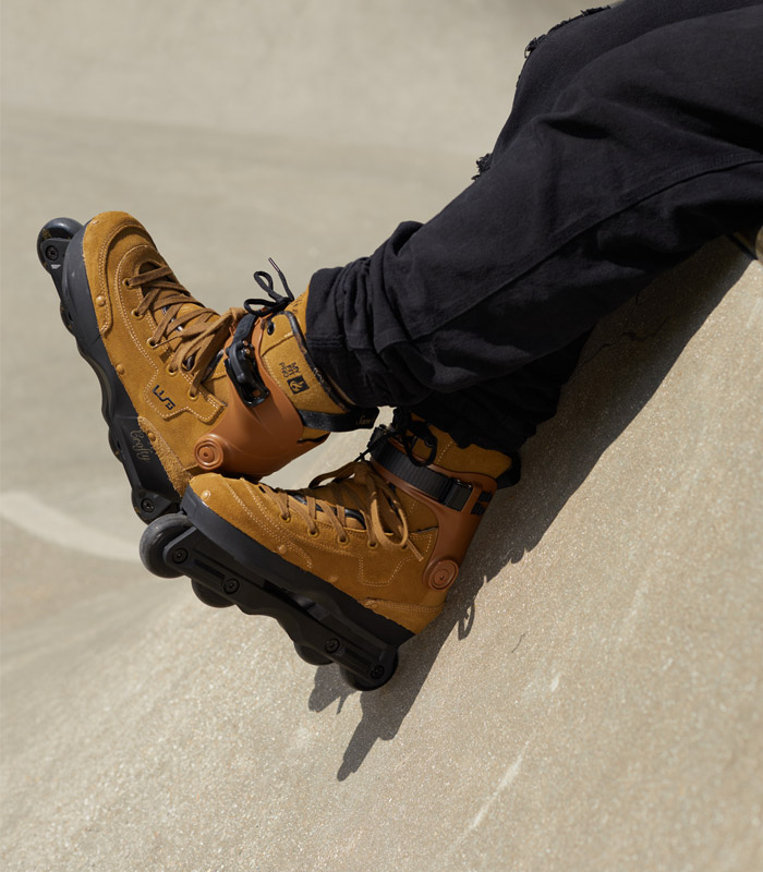 Este nuevo modelo Aeon incorpora nuestro nuevo diseño de shell abierta completamente rediseñado, fabricado en un plástico más duro con refuerzo adicional de fibra de vidrio, para grinds más rápidos y mayor capacidad de respuesta. El patín incorpora una parte superior blanda de ante nobuk integrada y extra reforzada que se integra a la perfección con con el skin