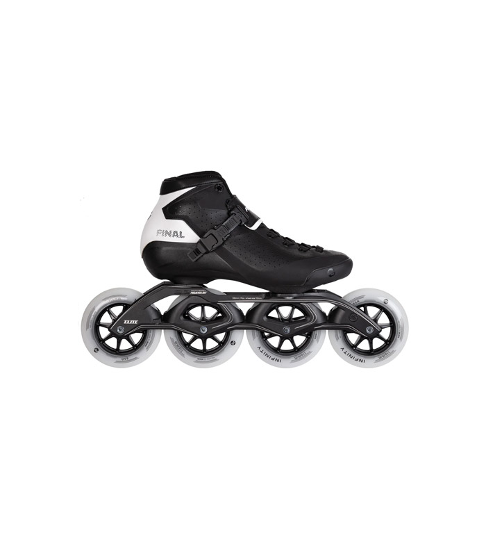 Nada te impedirá patinar rápido y mejorar tu marca personal con el asequible y potente patín de velocidad en línea POWERSLIDE Final 110. Originalmente un patín de fitness de alta gama, ha sido rediseñado con características innovadoras para convertirse en un patín de velocidad de competición. La carcasa de plástico reforzado con fibra de vidrio ofrece soporte y comodidad, perfecta para largas carreras y maratones. Esta bota estable mejora la respuesta y proporciona una excelente transferencia de potencia al robusto y preciso chasis POWERSLIDE Elite, fabricado en magnesio fundido. El Final 110 incorpora el sistema de montaje de 3 puntos TRINITY de POWERSLIDE, de competición, que ofrece un centro de gravedad bajo y mayor estabilidad. Este sistema también te permite ajustar el chasis a tu estilo de patinaje. Equipado con cuatro ruedas POWERSLIDE Infinity de 110 mm y rodamientos WICKED ABEC 9, el Final 110 está listo para ofrecer un rendimiento formidable. El nuevo modelo presenta un corte más alto para mayor sujeción lateral y un ajuste más estrecho sobre el tobillo para mayor estabilidad. Mejora tu patinaje con POWERSLIDE Final 110 y consigue nuevas marcas personales con facilidad.